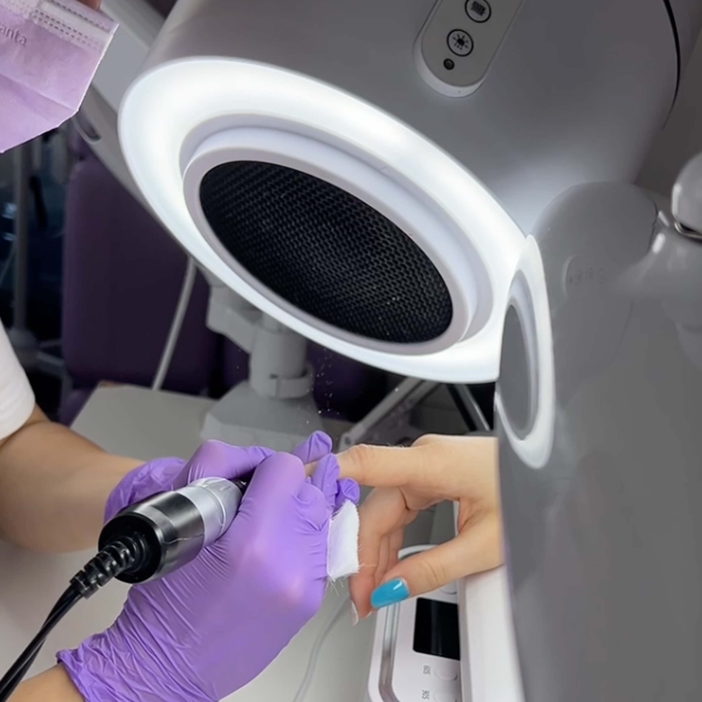 Здесь важно помнить: свет должен быть нейтральным, без мерцания и бликов. Например, 4BLANC Le Clair обеспечивает равномерный поток света без пульсации, что особенно ценно при длительной работе и съёмке результата. Такая лампа снижает нагрузку на зрение и помогает объективно оценивать оттенки гель-лаков.
