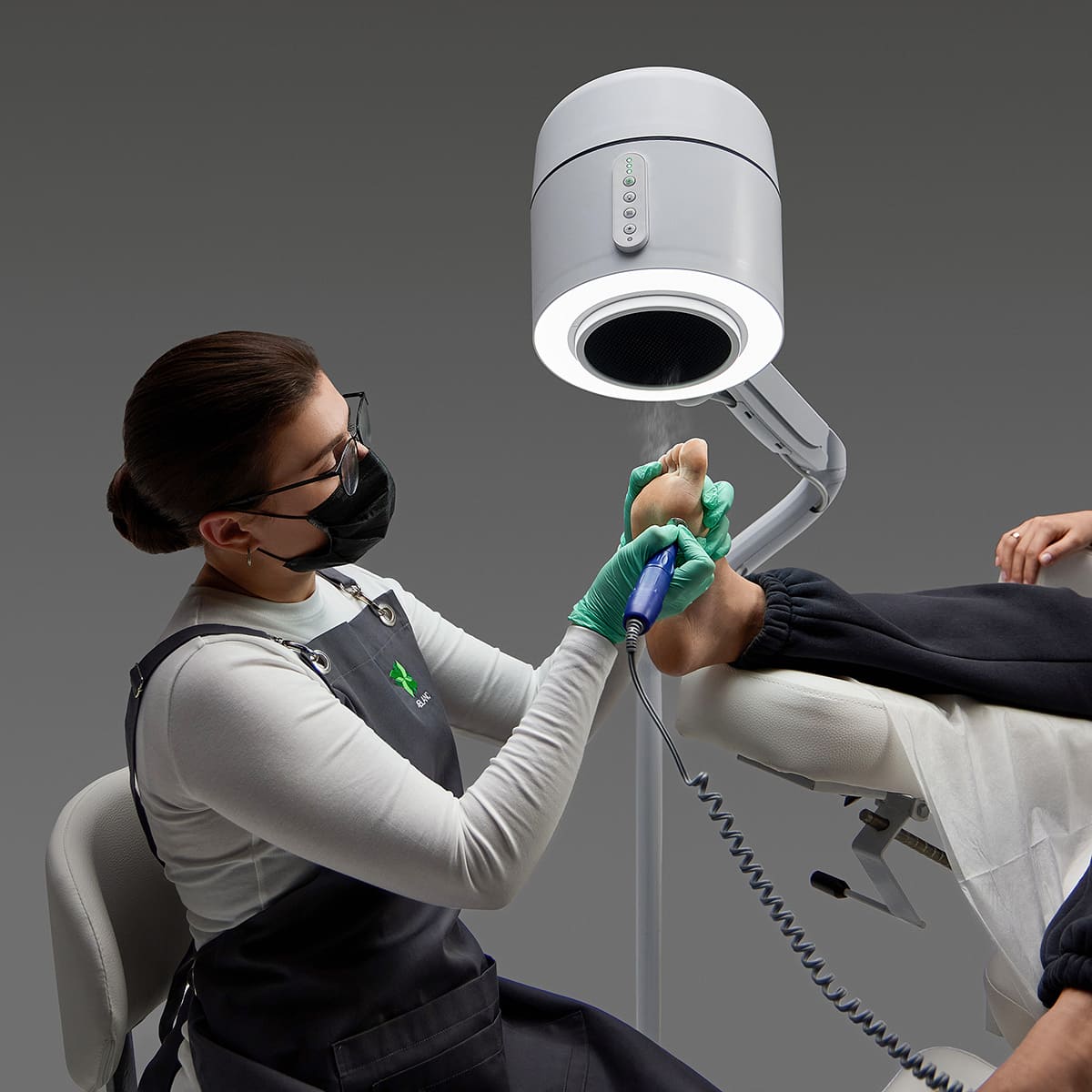 Уф-обеззараживание останавливает распространение микробов в вытяжке при педикюре и подологических процедурах. Ультрафиолет останавливает распространение микробов и убирает лишние запахи.